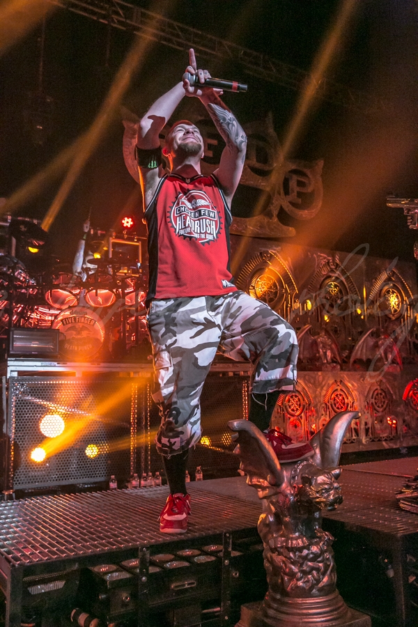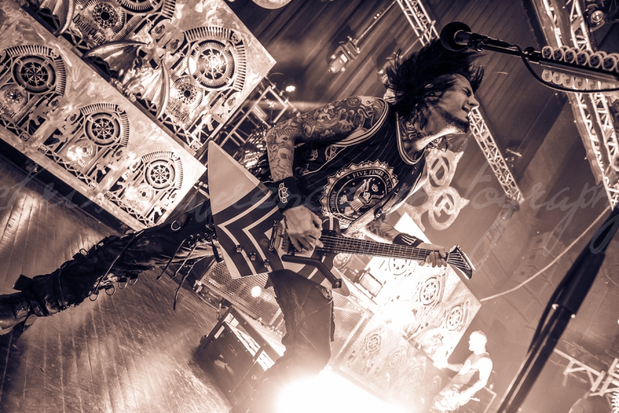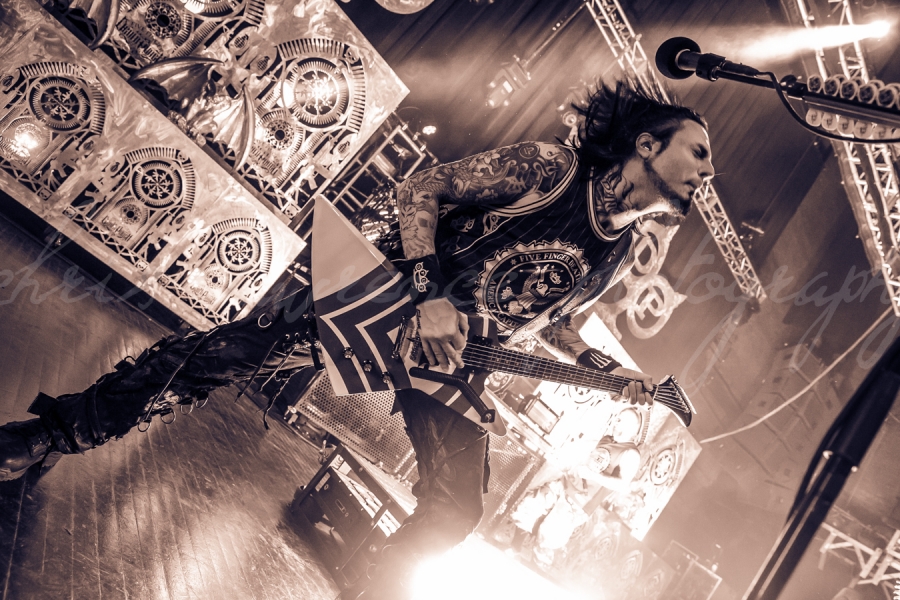 L.A. rockers Five Finger Death Punch brought their balls to the wall rock and roll show pulling out all the stops Tuesday October 8th halfway through their North American tour. Riding high on the success of their most recent release “The Wrong Side Of Heaven And The Righteous Side Of Hell Volume 1”, they played to a sold out house, filled top to bottom with Detroit fans ready to rip the place apart and let loose.