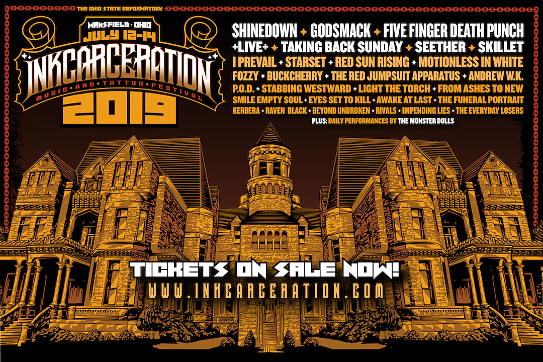 The lineup for the 2019 Incarceration Music and Tattoo Festival has been revealed, with Shinedown, Godsmack, and Five Finger Death Punch headlining the three-day event, taking place July 12th-14th at the Ohio State Reformatory in Mansfield, Ohio. The event will feature over 30 bands on two outdoors stages, 70 tattoo artists, reformatory tours, gourmet food, drinks and a haunted house attraction dubbed “Escape From Blood Prison”.